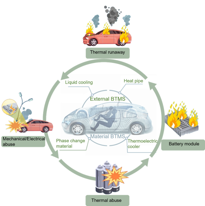 锂离子电池凭借着高能量密度与高效率的特点,在交通领域脱碳进程中发挥着关键作用。但其长期性能与安全性十分依赖有效的热管理,因为过量热量积聚可能会导致热失控等灾难性问题。因此本文首先对锂离子电池的热动力学进行系统性分析,阐述其基本工作原理与产热机制,随后深入探讨热失控的触发因素,进而提出热管理的双路径策略:内部策略聚焦材料层面改性,以减少热量产生并提升热传导性能;外部策略则对液体冷却、相变材料、热电冷却器与热管这四种先进冷却技术展开评估,并详细论述这些技术的工作机理、效率及应用挑战。此外,针对热失控蔓延问题,本文还提出合理应对措施。为实现对电池性能预测,文章最后还介绍电池管理系统及两种预测方法(基于模型的方法与基于人工智能的方法),同时以钠离子电池为例,给出除锂离子电池之外其他电池系统的热管理方案。本文通过整合理论见解与实际应用,不仅综述锂离子电池热管理领域最新研究进展,更为科研人员与工程师优化下一代电池系统的安全性与耐用性,提供切实可行的指导方案。