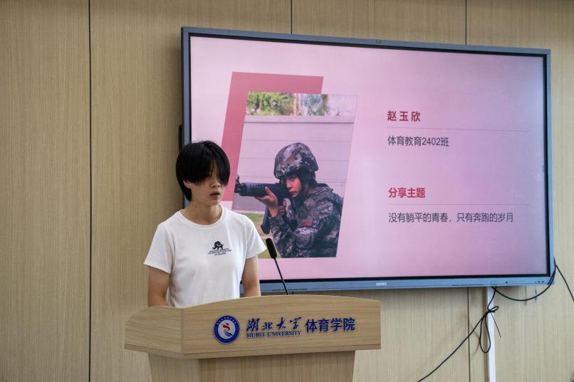 来自体育学院的赵玉欣学姐则分享了自己在武警部队的成长感悟。她坦言,初入军营时曾因“三点一线”的单调生活而迷茫,但在领导和班长的鼓励下,她逐渐明白“军人的价值不仅是靠轰轰烈烈来证明”。通过反复练习站岗执勤、提升业务能力,她在日复一日的坚守中读懂了“责任”与“担当”。
