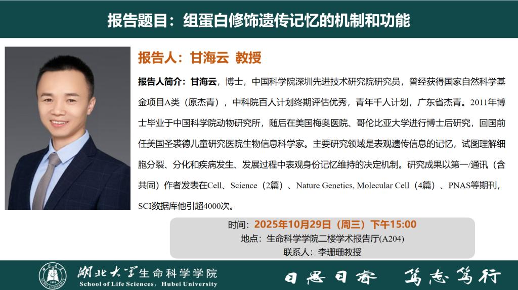 学术报告:组蛋白修饰遗传记忆的机制和功能