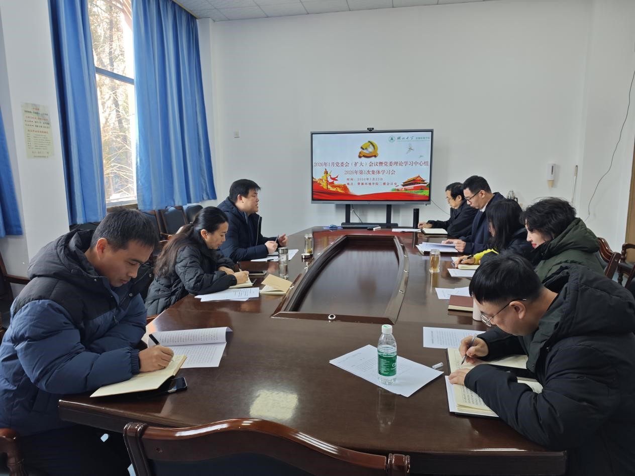 1月23日上午,资源环境学院党委理论学习中心组开展2026年第1次集体学习,专题研学“三会一课”制度及学校《关于进一步落实“三会一课”制度的实施方案(修订)》,围绕党的二十届四中全会精神集中轮训班内容交流研讨。学院党委领导班子成员、理论学习中心组成员参会,院党委书记陆伟主持会议。