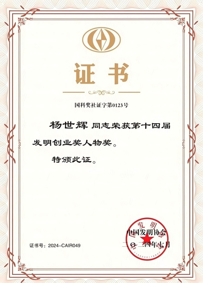 “发明创业奖”是2005年由科技部批准、中国发明协会设立、国家科学技术奖励工作办公室注册登记的社会力量设奖。“发明创业奖人物奖”旨在通过评选、表彰一批在所属科学技术领域取得较大突破或者在科学技术发展中有显著成绩,且在科学技术创新、科学技术成果转化和高技术产业化中取得显著经济效益、社会效益、生态环境效益的发明者,是首个为发明家设立的国家最高奖项。