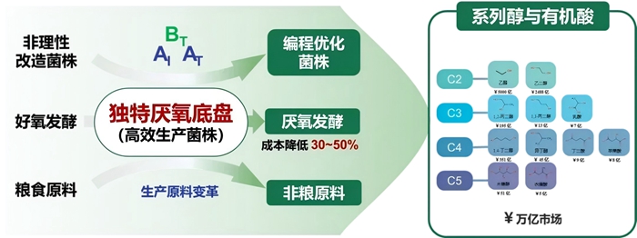 目前,武汉睿嘉康公司专注于绿色合成生物制造领域产品的研发与应用,针对丰富且非粮大宗醇和有机酸等管线的生物燃料与生物材料厌氧发酵生产进行布局与研究。公司已独立开发且具有自主知识产权的工业菌株知识数据库及高效基因编辑技术体系,拥有丰富的高产稳产细胞工厂,服务于可再生能源及生物材料绿色生物制造的需求,助力生物经济与绿色可持续发展。