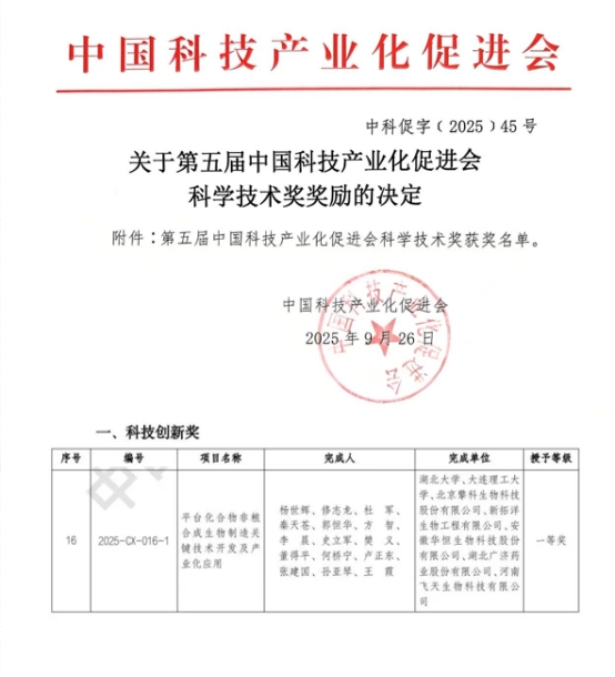 近日,中国科技产业化促进会公布了“第五届中国科技产业化促进会科学技术奖”获奖名单。williamhill威廉希尔杨世辉教授牵头的“平台化合物非粮合成生物制造关键技术开发及产业化应用”项目获科技创新奖一等奖